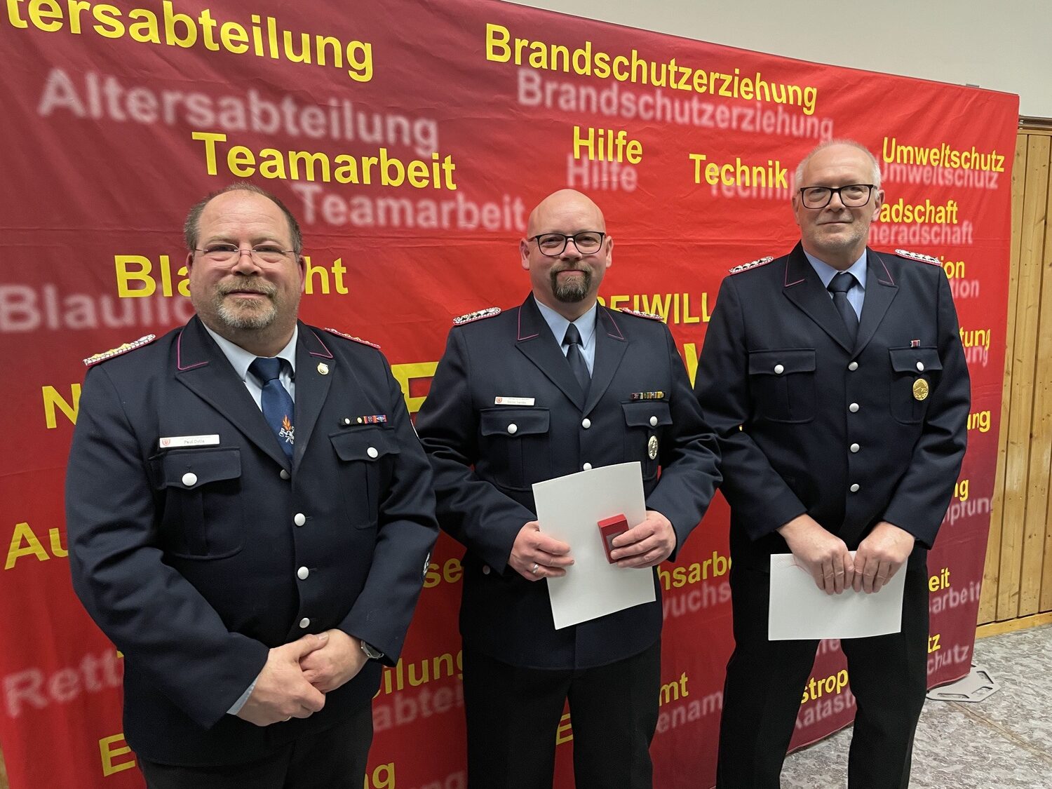 Der Höhepunkt jeder Versammlung sind Ehrungen und Beförderungen. Durch den Gemeindebrandmeister Paul Dylla wurde Enrico Landau mit dem Ehrenzeichen des Landes Niedersachsen für 25-jährige aktive Mitgliedschaft in der Feuerwehr geehrt. Burkhard Wille erhielt eine Ehrung des Niedersächsischen Landesfeuerwehrverbandes für 50 Jahre Mitgliedschaft in der Feuerwehr.