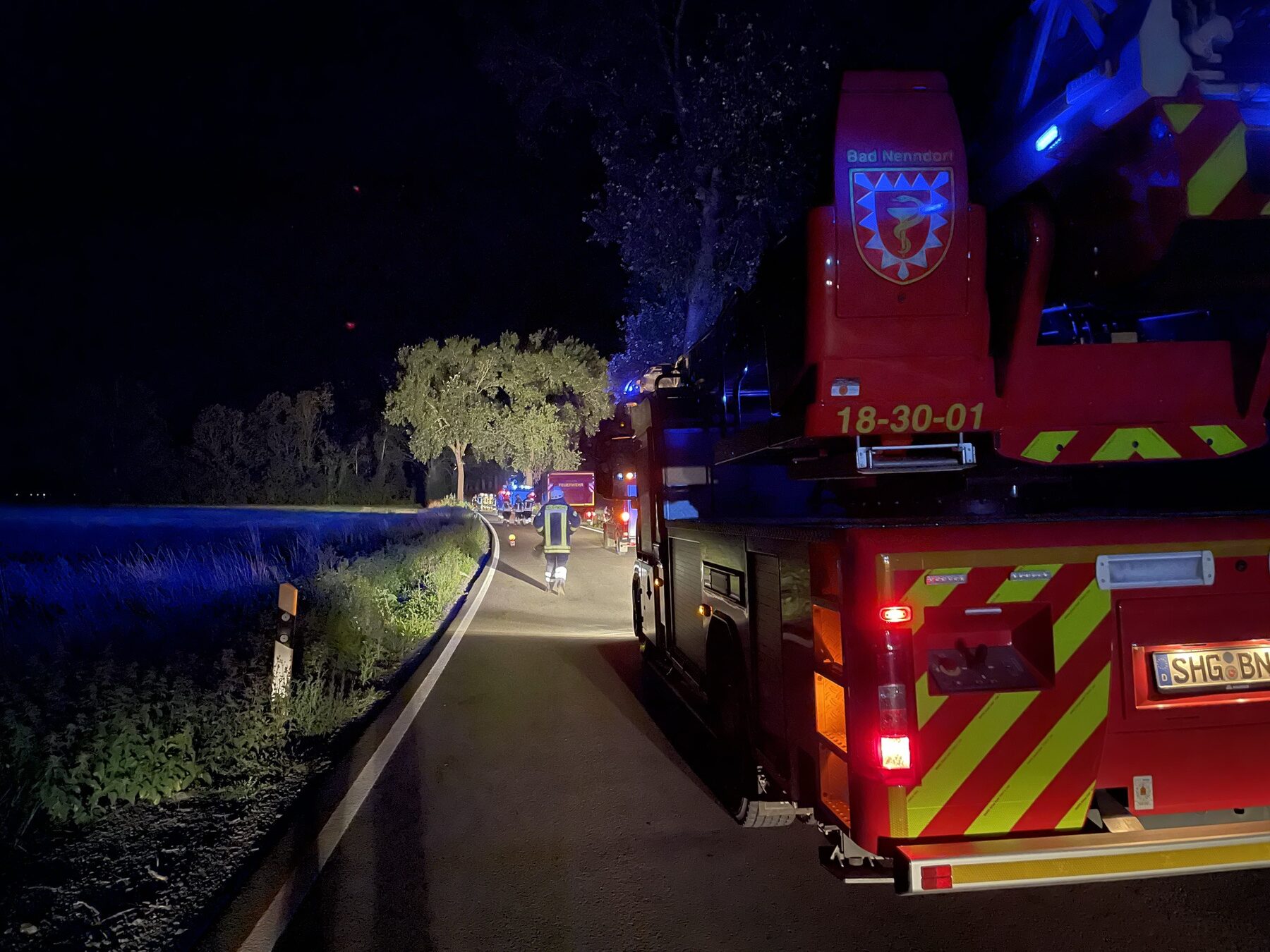 Nach etwa einer Stunde war der Einsatz beendet und die ehrenamtlichen Feuerwehrleute rückten wieder ein. Vielleicht war ja noch etwas Schlaf möglich, bevor der Wecker zur Arbeit rief.