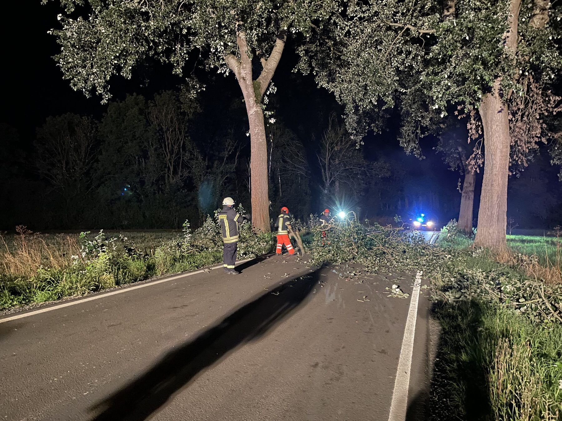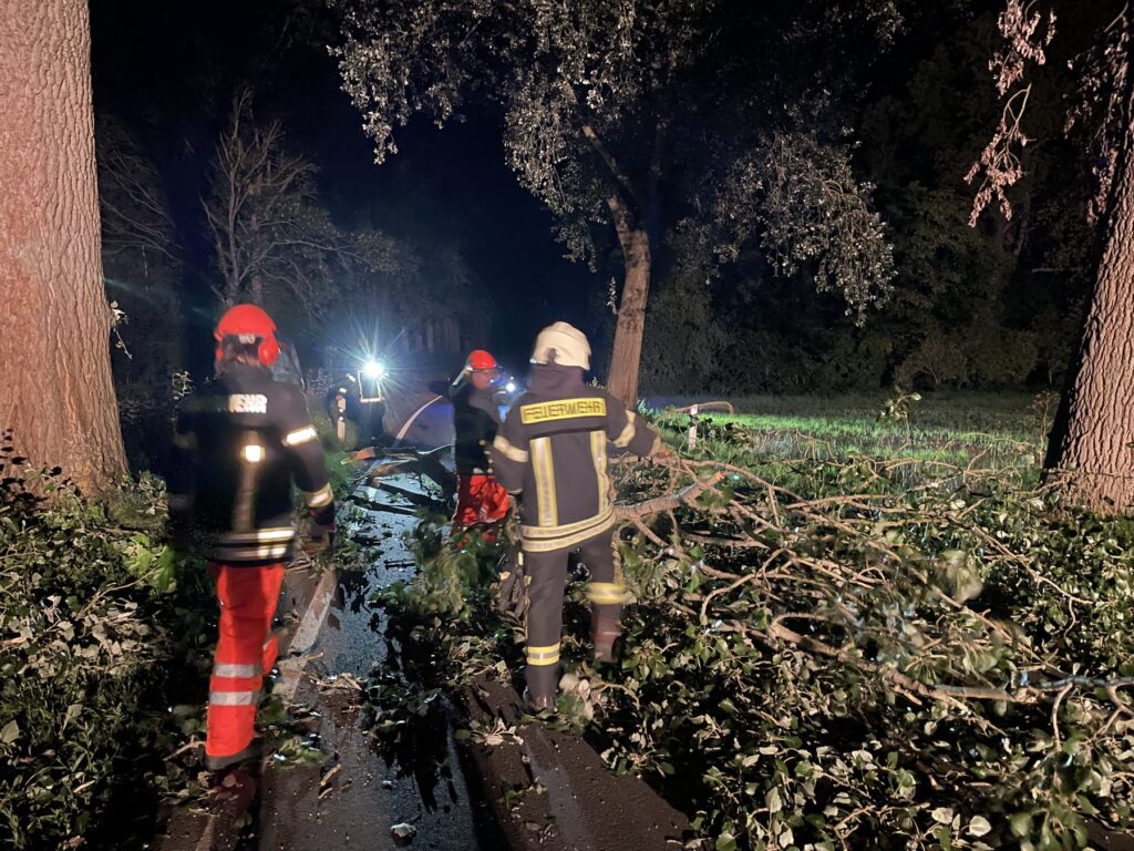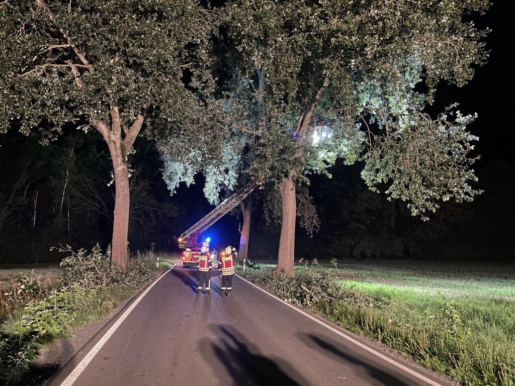Rehren | 19.08.2025 | Ein abgebrochener Ast einer Pappel an der Landesstraße zwischen Rehren und Ottensen hat für einen nächtlichen Feuerwehreinsatz gesorgt. Um 01:18 Uhr alarmierte uns die Integrierte Regionalleitstelle Schaumburg/Nienburg zu dem Einsatz.
