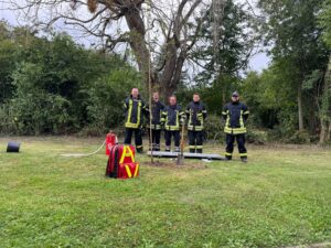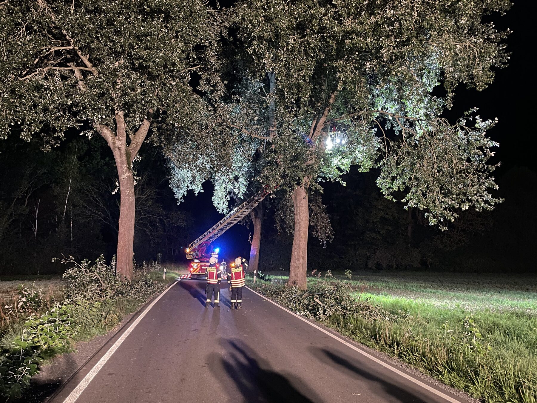 Nachdem auch die letzten Überreste mit Besen beseitigt wurden, kontrollierte die Besatzung der ebenfalls alarmierten Drehleiter aus Bad Nenndorf die Bäume, ob noch weitere Äste drohten, herabzustürzen.